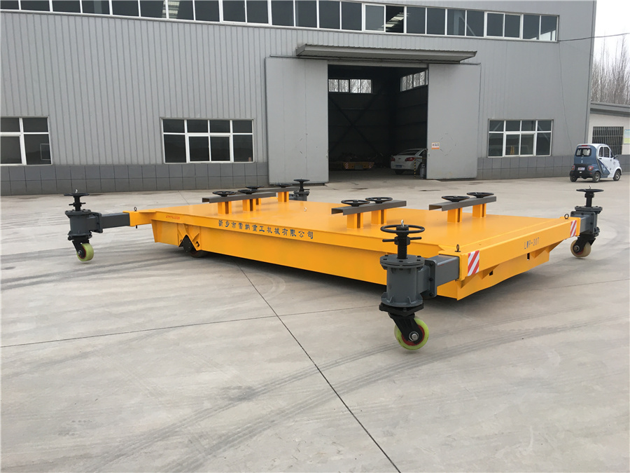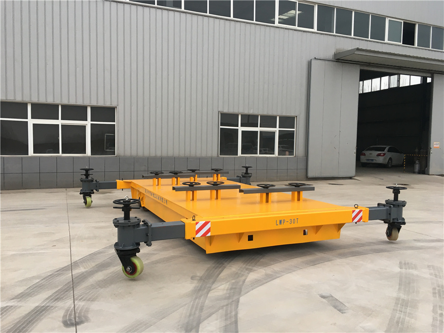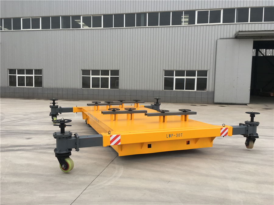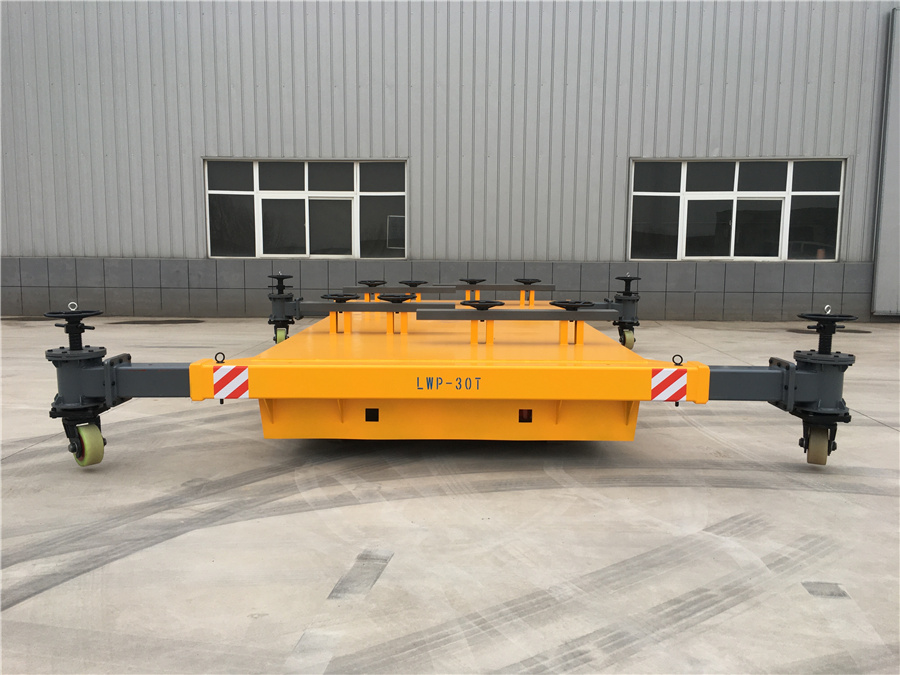新鄉(xiāng)市雷納重工機(jī)械有限公司生產(chǎn)的LWP系列無軌膠輪運(yùn)輸車,載重30噸,可以按照實(shí)際載重需求定制加工,臺(tái)面夾具有效保護(hù)工件不會(huì)傾翻,臺(tái)面四周加裝可延伸輔助支撐輪,有效保護(hù)車體運(yùn)輸過程中的穩(wěn)定性。