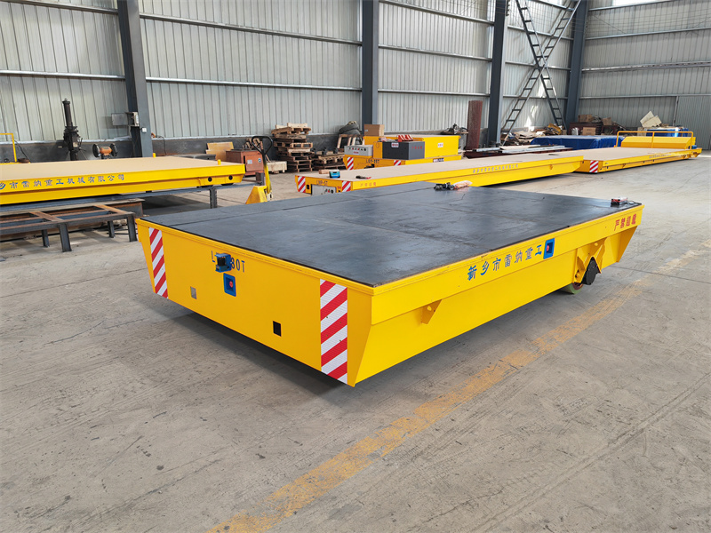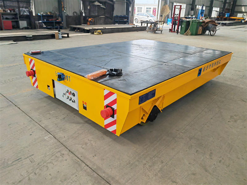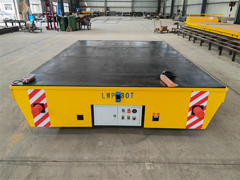 無軌電動平車,前后增加防撞柱,車體四周均設置有急停開關。蓄電池供電運行方便穩(wěn)定,轉(zhuǎn)向靈活承載力強。