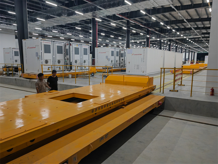 蓄電池供電軌道臺車可以和儲能集裝箱完美適配,根據(jù)集裝箱尺寸大小來定做軌道車臺面,同時有多種供電方式可以選擇。